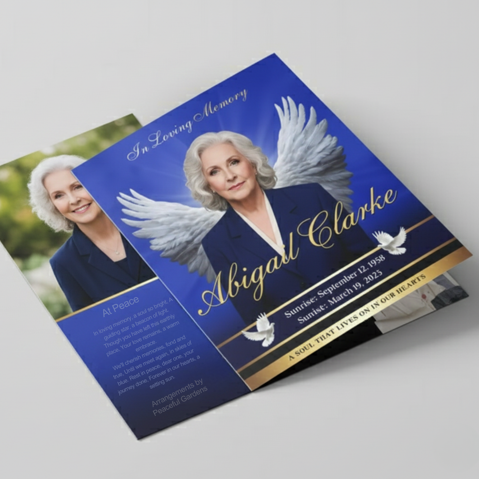Honor a beautiful life with a personalized funeral program that tells their story with dignity, grace, and love. Our custom obituary programs are thoughtfully designed to reflect your loved one’s personality, faith, and legacy.